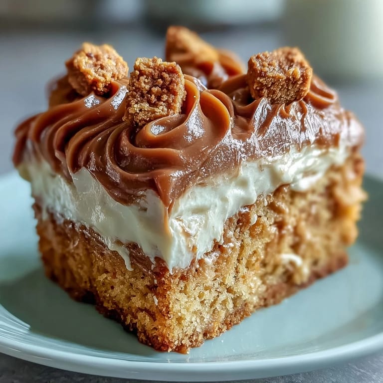 Save My neighbor knocked on the door one afternoon holding a jar of Lotus spread, insisting I had to bake something with it. I hesitated at first, unsure how cookie butter would work in a cake, but curiosity won. The kitchen filled with warm spice and caramel as the batter baked, and when I pulled that golden sponge from the oven, I knew she'd been right all along. That first slice, studded with crunchy Biscoff pieces and slathered in creamy frosting, turned into my most requested dessert overnight.