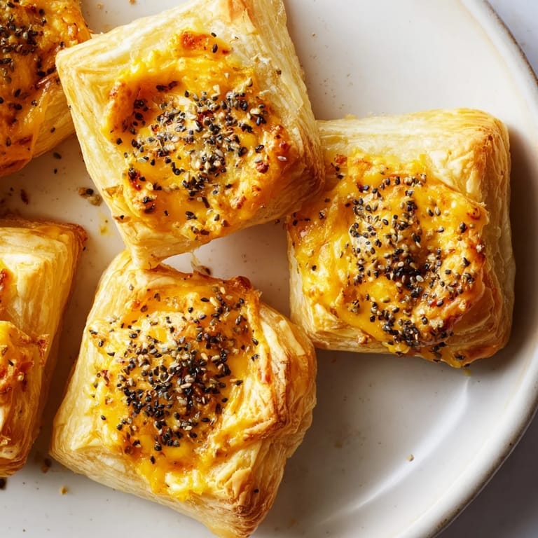 Save Flaky, golden puff pastry bites filled with a blend of cheeses and aromatic spices—a perfect, crowd-pleasing appetizer for any gathering.