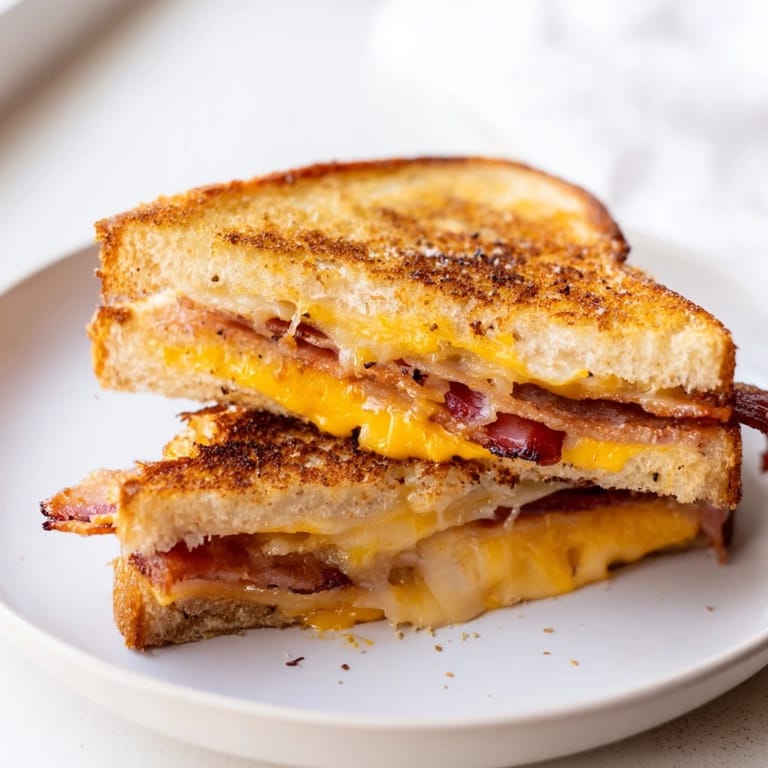 Save There's a moment on lazy Saturday afternoons when my kitchen smells like butter hitting a hot skillet, and I know exactly what I'm making. This crispy bacon cheddar grilled cheese has become my default when I need something that feels indulgent but takes almost no time. The first time I added mayo to the outside of the bread, a friend watching from the counter asked why I was making it more complicated, but one bite and she understood—that extra layer of crunch changes everything.