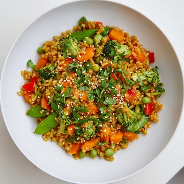 Save A vibrant, flavorful bowl featuring golden, crispy rice tossed with colorful sautéed vegetables and savory seasonings. Perfect for a light yet satisfying supper.