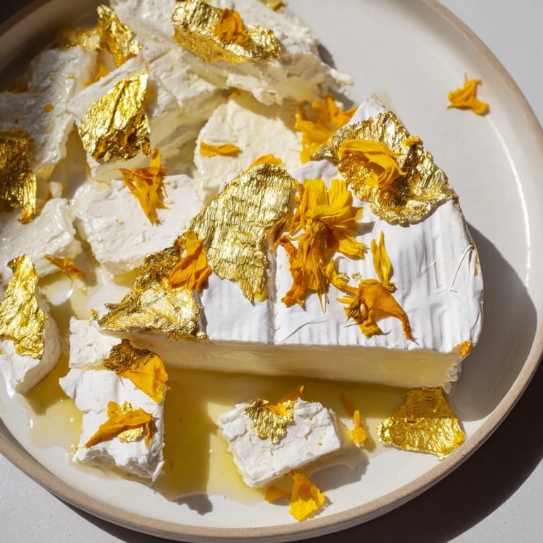 Save The first time I arranged edible gold on cheese, I felt a little ridiculous—like I was gilding a lily, which, as it turns out, is exactly the point. My friend Sarah showed up with a box of gold leaf for her daughter's engagement party, and we spent an hour in the kitchen debating whether this was elegant or over the top. By the time we added those yellow petals and stepped back, we both understood: some dishes aren't just about taste, they're about the gasp when someone sees them.