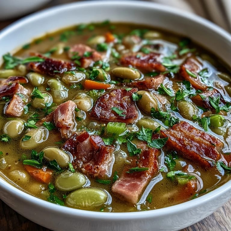 What strikes me most about this soup is how it proves that you don't need obscure spices or complicated techniques to create something memorable. The ham provides the luxury here, but it's the lima beans that do the real work—they absorb everything around them and transform into something almost creamy without any cream at all. This is peasant food that somehow tastes elegant, which might be the highest compliment a soup can receive.