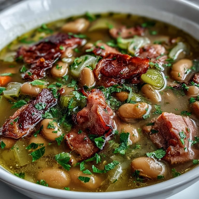 Save There's a moment about 45 minutes into simmering when the whole pot seems to sigh, like it's finally accepted its purpose. The broth deepens to gold, the beans surrender completely, and the ham flavor has woven itself through everything. That's when I know the hard work is done and all that's left is the joy of serving it.
