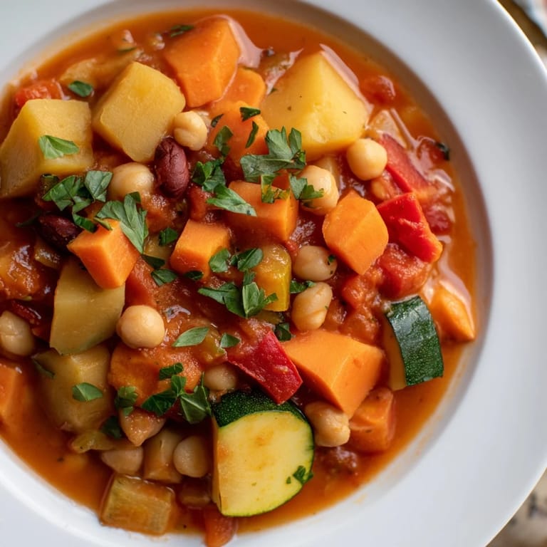 Save I discovered this stew on a November evening when the kitchen felt too quiet and my fridge was overflowing with vegetables I'd bought with good intentions. There's something about the smell of cumin and smoked paprika hitting hot oil that made me forget about the rain outside. I threw together what I had—sweet potatoes, beans, tomatoes—and within an hour, my apartment smelled like comfort itself. That first bowl, with the broth pooling around tender cubes of sweetness, reminded me why cooking for yourself matters.