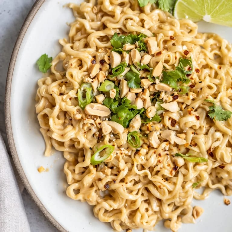 Save There's a particular kind of hunger that calls for something fast but not forgettable—the kind that hits on a Tuesday night when you've got five minutes and zero energy for anything complicated. That's when I discovered this peanut Thai sauce noodles dish, tossing instant ramen with a sauce so rich and complex it feels like cheating. The magic is in how something so simple—just peanut butter, a few pantry staples, and a splash of heat—transforms into something that tastes like you've been slaving over a wok for hours.