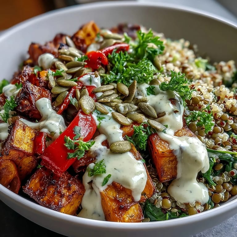 This fusion-style dish strikes a beautiful balance between earthy tones and bright, zesty flavors. By roasting the sweet potatoes and red onions until they reach a state of caramelization, you unlock a depth of flavor that complements the simplicity of the grains and lentils.