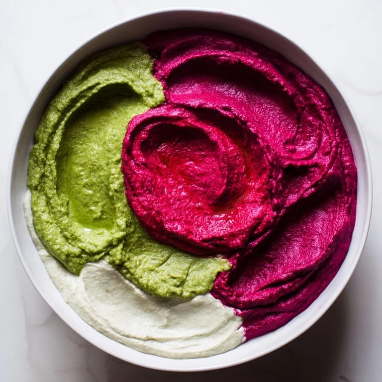 Save The first time I made this, it was for a dinner party where everyone was stressed about what to bring. I stood in my kitchen looking at a rainbow of dips I'd grabbed on impulse—hummus in three colors, a roasted red pepper spread—and thought, why not lean into the chaos? That's when the marble swirl was born: a celebration of color that looked intentional even though it started as happy accident. My guests spent more time photographing it than eating it, which felt like the highest compliment.