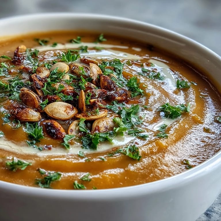 - Ladle into bowls and top with toasted pumpkin seeds, fresh parsley, and an artistic drizzle of coconut milk. Each element adds texture and visual appeal.