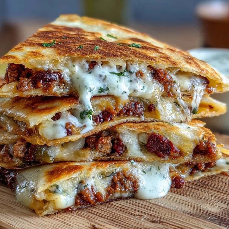 This fusion recipe takes the traditional elements of shepherd's pie—ground meat, vegetables, and mashed potatoes—and elevates them inside a crispy quesadilla shell. It strikes the ideal balance of creamy and savory with a delightful textural contrast, making each bite irresistible.