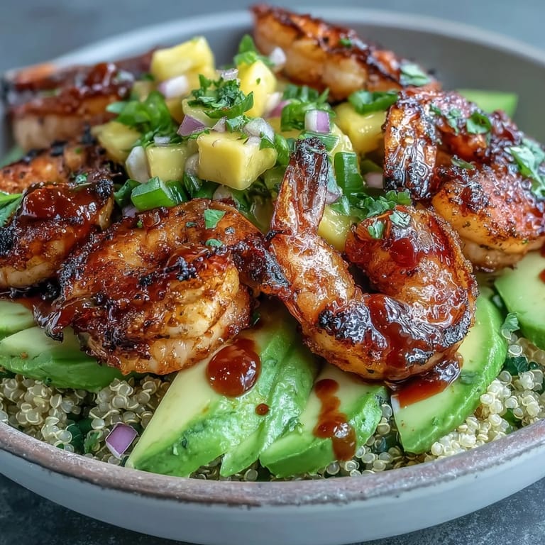 I've made this with grilled chicken thighs when shrimp was too expensive, and it was just as satisfying. Brown rice works if you don't have quinoa, and I've even used farro when I wanted something chewier. One time I forgot to buy mango and used diced pineapple instead, it was sweeter but still really good. If you want it spicier, add a few dashes of hot sauce to the lime chili sauce or leave some jalapeño seeds in the salsa.