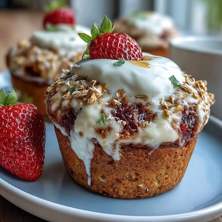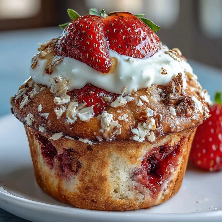 Save Enjoy the perfect start to your day with these moist, wholesome strawberry muffins. Combining fresh, juicy strawberries with creamy Greek yogurt and hearty oats, these muffins offer a delightful balance of flavor and texture. Whether for breakfast or a comforting snack, their tender crumb and naturally sweet bursts of berry make them an irresistible treat.