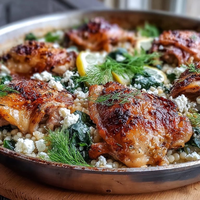 Save There's a particular moment in mid-week cooking when you realize you need something that feels both elegant and effortless, and that's exactly when this Greek chicken and pearl couscous bake entered my kitchen routine. My sister sent me the idea after a trip to Athens, and I'll admit my first attempt was overly cautious—I kept opening the oven door like I was defusing something. What I discovered instead was this beautiful, creamy, lemony dish that somehow tastes like you spent hours on it when really you've just nestled chicken thighs into a bed of toasted couscous and let the oven do most of the thinking.