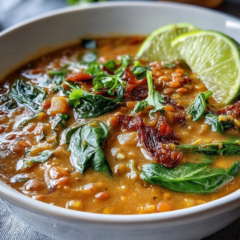 - Ladle the dahl into bowls and top with lime wedges and fresh cilantro, letting each person squeeze brightness into their own bowl. The lime isn't optional—it's the final note that makes everything sing.